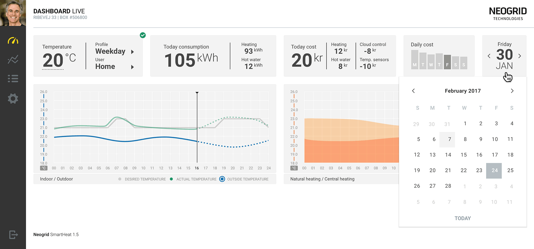Live Dashboard – Tabloul de Bord – este o unealtă puternică însă ușor de folosit, permițând utilizatorului monitorizarea și modificarea unor parametri cheie ai sistemului. De exemplu: deși aparent simplu, Indoor / Outdoor graph – Graficul Parametrilor Interiori și Exteriori ai Locuinței – compară temperatura mediului și a locuinței cu valoarea stabilită de utilizator nu doar în prezent sau în trecut ci și în viitor, utilizând prognoza meteo.