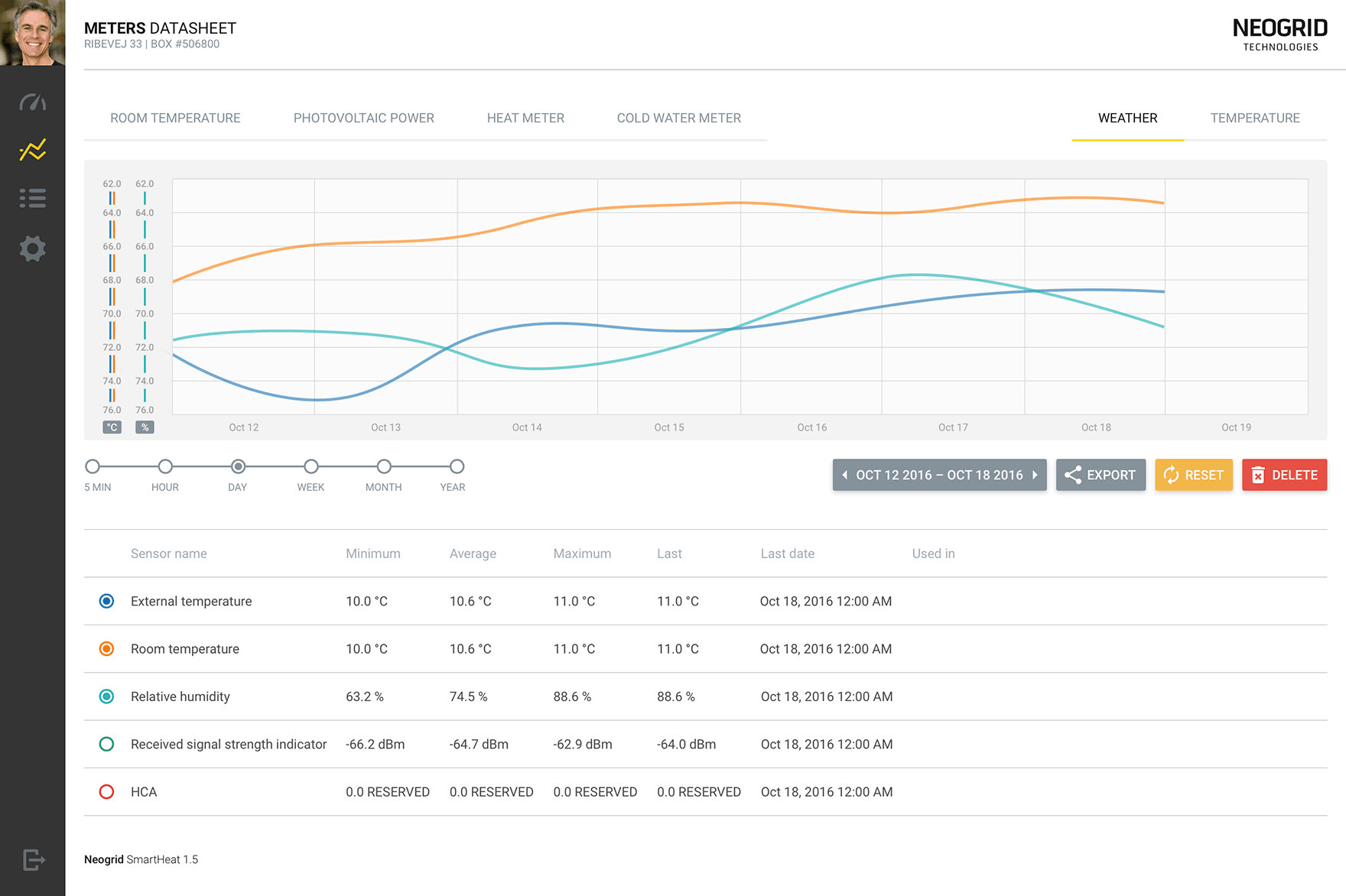 Meters Datasheet – Fișa cu Date – prezintă toate valorile înregistrate de senzorii instalați în locuință. Aceste date pot fi organizate în "dispozitive virtuale", spre exemplu, toate înregistrările legate de starea vremii – temperatură, umiditate, etc. – putând fi grupate în categoria Meteo.